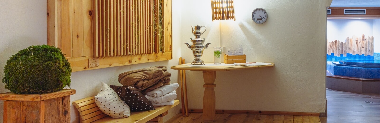 Un'atmosfera rilassante e suggestiva farà da cornice alla vostra pausa wellness di coppia tra le bolle energiche dell'idromassaggio, un purificante bagno di vapore accompagnato dall'essenza di pino mugo e il rilassante rito della sauna.